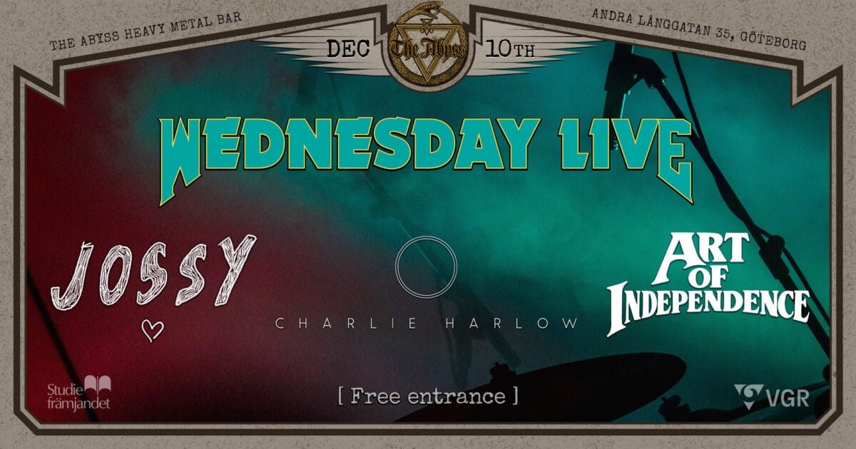 Wednesday Live is a collaboration between The Abyss and Studiefrämjandet. Together, we want to highlight bands and give unknown bands a chance to perform on a prestigious stage and reach their audience. Wednesday Live is a way for us at The Abyss to support culture in Gothenburg. Young bands are our future, and with this collaboration we hope to give these talented musicians a leg up. So come and support culture.